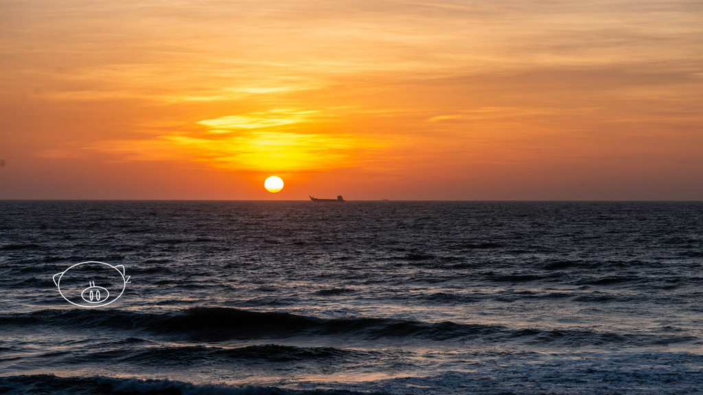 海景房就在于海景二字,睡觉只关上了窗纱,早上5点多,躺在床上就感觉到天边慢慢变红,睁开眼,看看时间,猪小宝也醒了,要起来坐到阳台处等日出。天水相接的地方出现了一道红霞,红霞的范围慢慢扩大,越来越亮,太阳就要从天边升起来了。慢慢的出现了太阳的小半边脸,红是红得很,却没有亮光。慢慢的,使劲向上升。终于冲破了云霞,完全跳出了海面,颜色真红得可爱。一刹那间,这深红的圆太阳发出夺目的亮光,旁边的云也有了光彩。