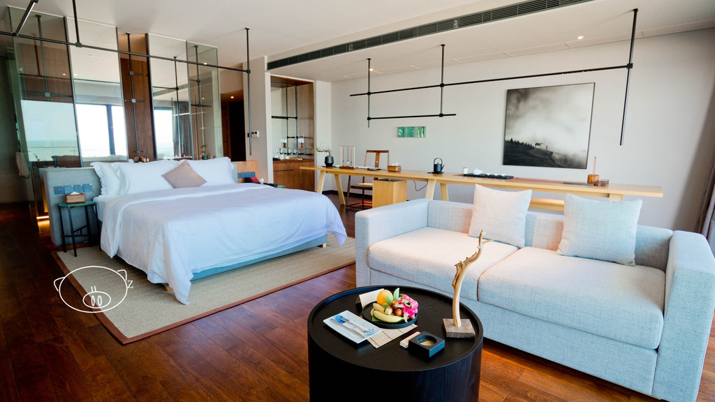 我们这次入住的是檀舍TANHOUSE的无敌露台海景套房,是酒店面积最大的海景套房,一踏入房间,满眼都是大海与蓝天,无敌海景阳台最得我心,孩子完全按捺不住内心的欢欣雀跃,又蹦又跳的已经听不到我们在跟他讲话~~