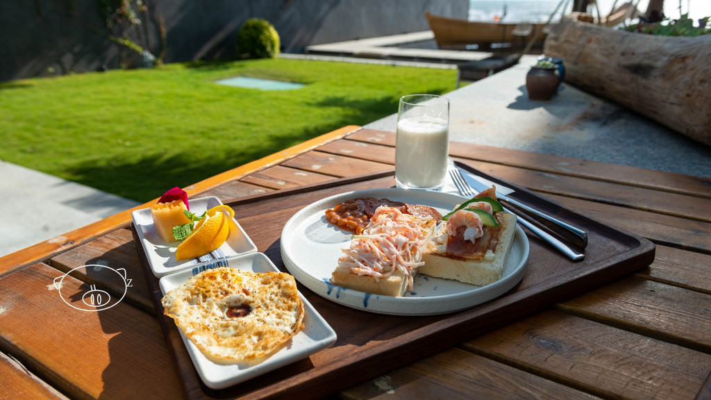 看完日出,继续躺着睡觉,到了早餐时间,有三款早餐提供,前一天晚上在专属管家群里预约好早餐时间和所选择的套餐,还能选择在哪里用餐,房间里、餐厅里、泳池边等,到了预约时间,在餐厅里享用一天美好的开始,营养搭配的美味早餐。