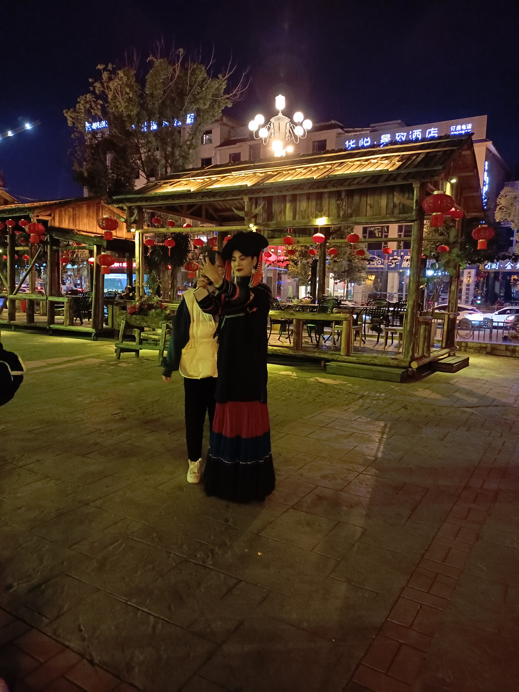 路遇彝族小姐姐,很热情的,说晚上还有篝火晚会,我们等不了,累了要睡觉呀
