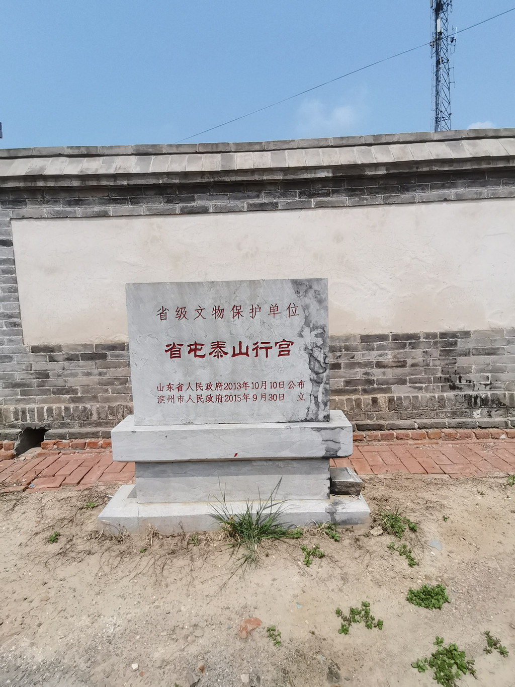 泰山行宫又称泰山庙,位于惠民省屯街西北隅,建于明代,原有前后两殿,现仅存前殿。四扇门庄重威严,两扇隔窗古朴大方,雕刻细腻。是鲁北地区仅存的明代建筑珍品,山东省省级文物保护单位。