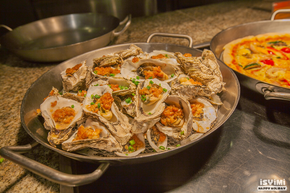 厨师现做铁板类的炙热美食,滋滋的声响,提醒着我要大饱口福。