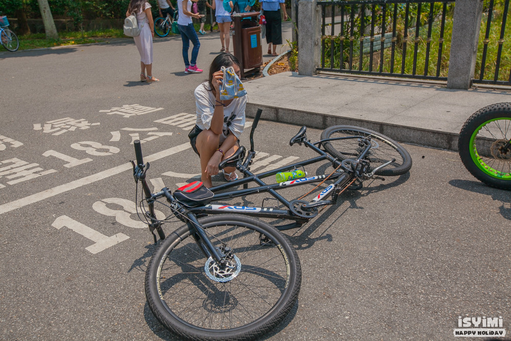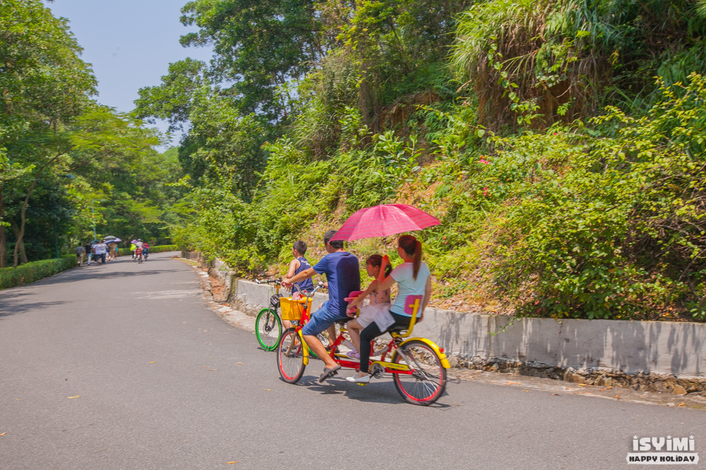 租好单车之后,要推着爬山斜坡,然后才能开始骑,如果不想那么麻烦,也可以到山上再租,价格稍贵一点点,要25块。再怎么也比深圳湾便宜多了,这个价格在深圳一个小时都租不了。