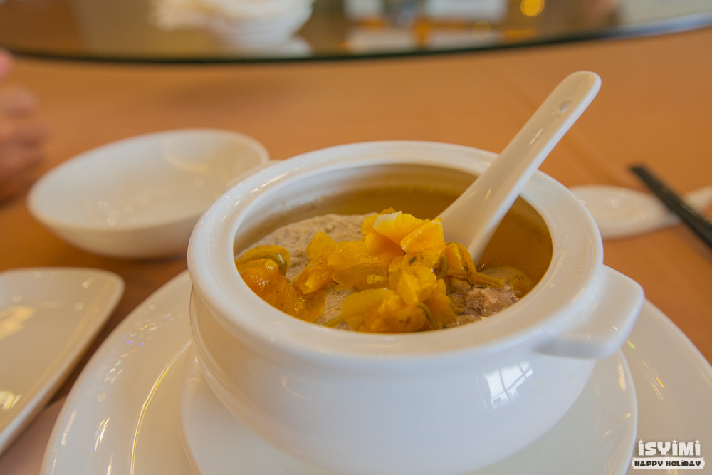 酿春,春也就是当地说的蛋,不得不提也是这里的主打菜式,首先挑选分量足够的大鸭蛋,在每一个蛋黄里酿入肉末等新鲜食材,这不是一般人能做的,想想平时我打个蛋都容易把蛋黄弄烂的,这种细致的活也是要超高技巧的哦,然后再水煮,每一个出来都是完完整整的,伴以粉丝,清新脱俗的一道菜。