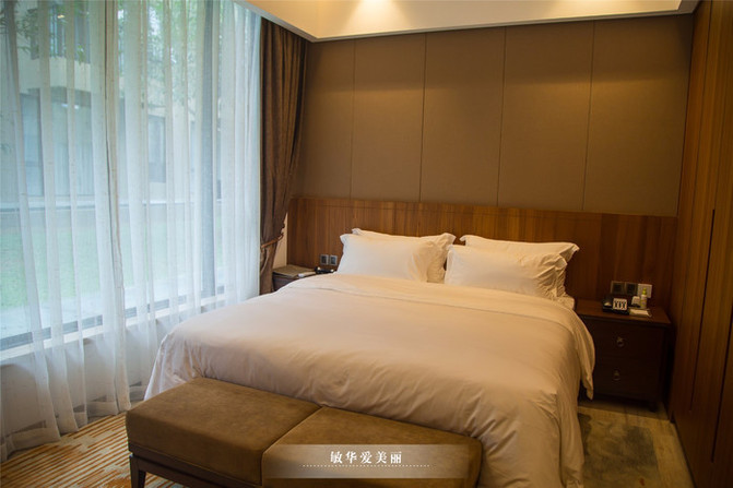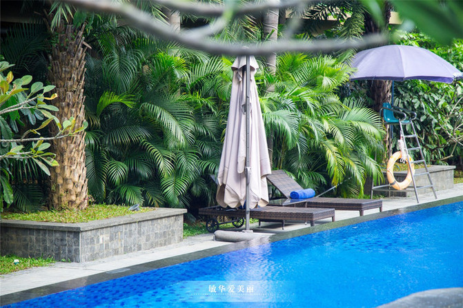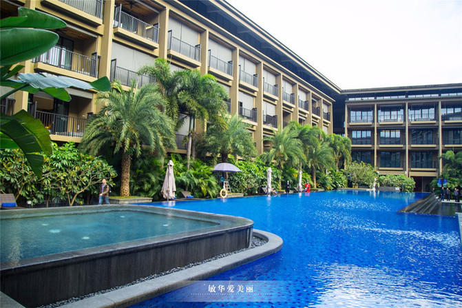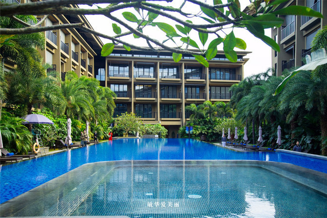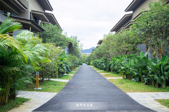 车子进入度假村后,入眼是大片的绿化园林,与大自然融合为一体,慵懒低调的奢华。