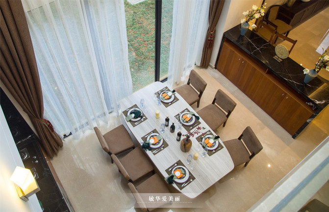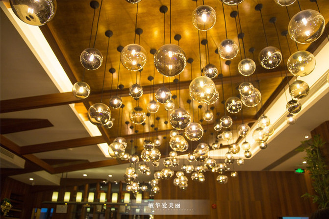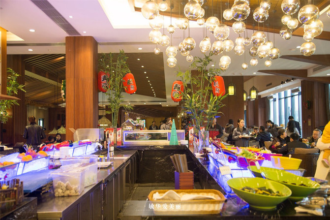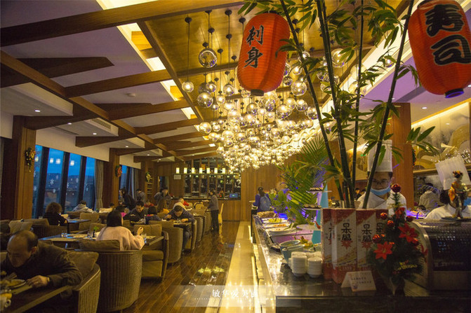日餐厅室内的就餐环境大气典雅,最喜欢是顶部吊灯了,增添不少浪漫气氛。