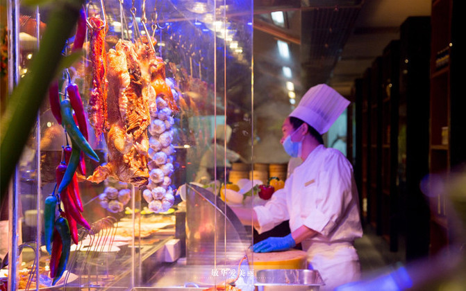 餐厅分为海鲜区、热菜区、冷菜区、烤物区、甜品区、水果区、酒水区、明炉区、汤品区,取餐的地方很集中,9大档将近200款美食丰富又不失精致。