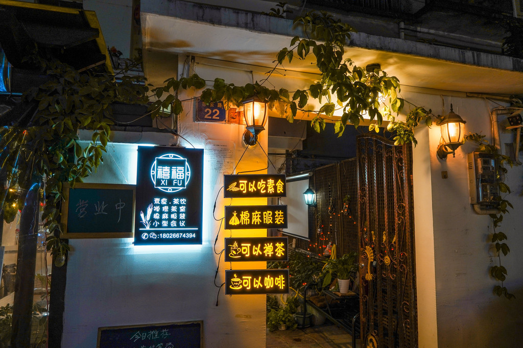 除了苏东坡外,500年前, 江南 四大才子之一的祝之山也曾在 惠州 居住过,而他居住的这条巷,就是祝屋巷。现在这里已经成为了潮流之地,很多文艺小店和创意市集都在这里开设。我们来的时候刚好是12月31日,当地的音乐人在这里举行倒数音乐party,我们也有幸参与其中。
