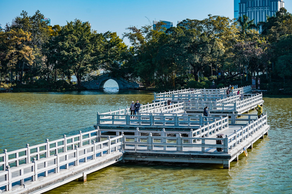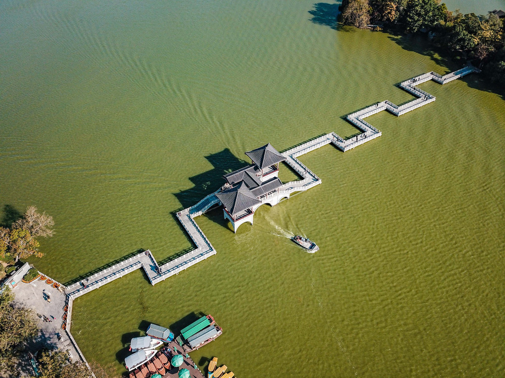 九曲桥也是不可错过的一个景点,俯拍的效果一绝。