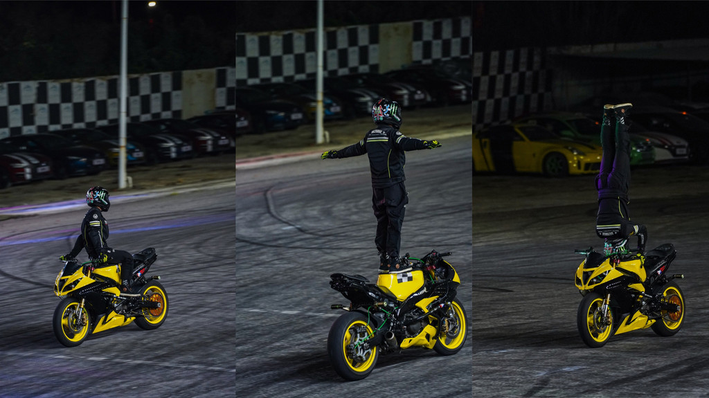 最后的环节是现实版的速度与激情,两台电影《速度与激情》里的尼桑350Z压轴登场,将现场气氛推上了高潮,轮胎摩擦产生的气体让整个表演场地都充满了烧焦的味道,超级爽的视觉观感体验。