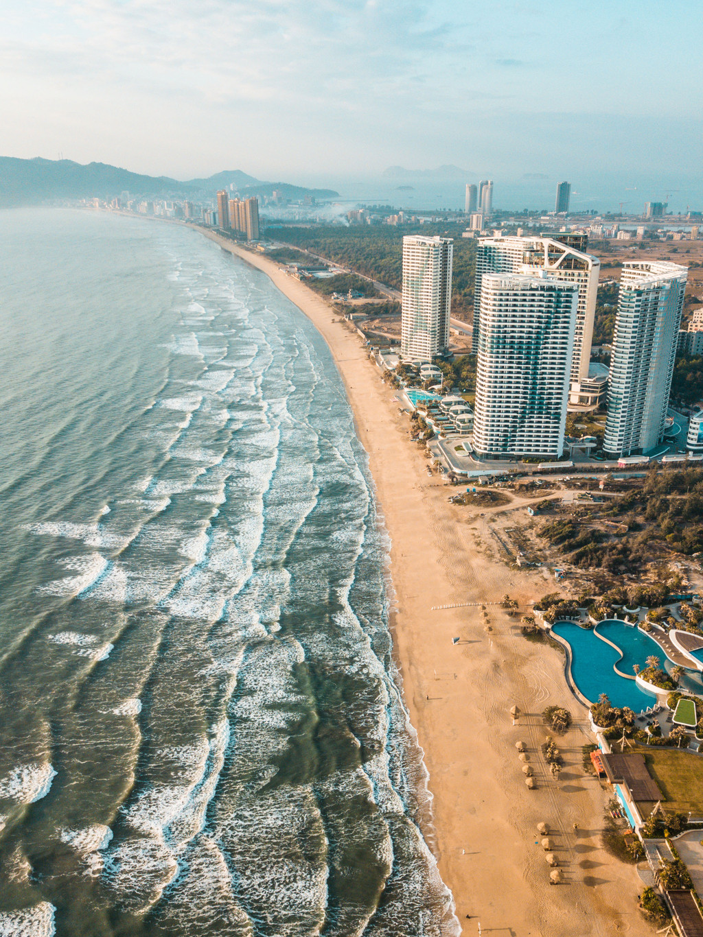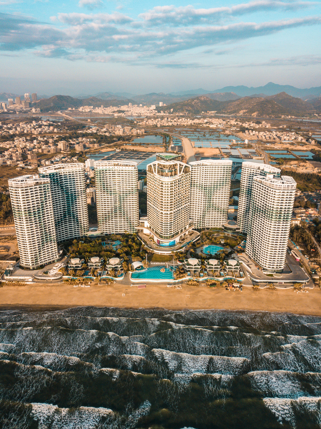 在双月湾入住这家酒店真的超级赞,满足了我们对海景的所有向往。这让我仿佛来到了黄金海岸,吹着 巴厘岛 的海风。我们住的房间面朝大海,晚上可以看到海上升明月,早上可以看到海上日出。虽然是冬天,但是海风却一点都不冷,一波一波的海浪拍打在沙滩上,用无人机航拍画面真的太美了!