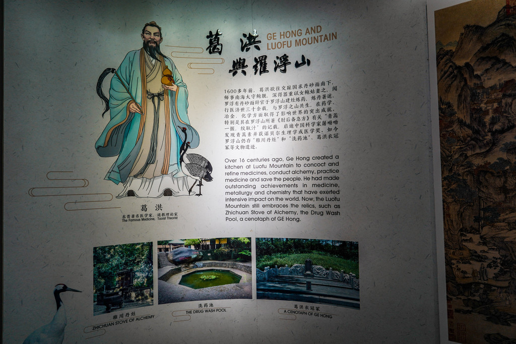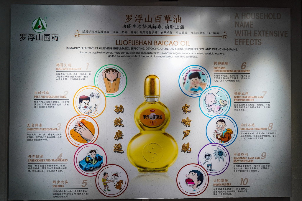 罗浮山因为生态环境优越,所以它也是岭南天然中药宝库。一代名医葛洪在罗浮山上采集百草熬炼出的“百草药油”,如今已成为了罗浮山最受欢迎的手信之一。在罗浮山百草油历史文化长廊里,可以看到有关百草油的历史,成分,制作之路,以及一代名医葛洪的故事。