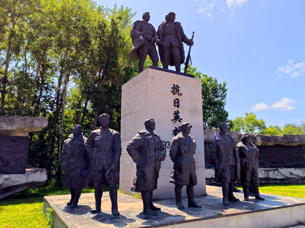 来到虎头要塞遗址景区,广场一侧一组由几名抗日英雄组成的群雕像。他们戎装在身,目视远方,坚毅不屈的神态,无不给人以果敢和力量。与之遥遥相对的就是占地面积约29.3公顷的“侵华日军虎头要塞遗址”。