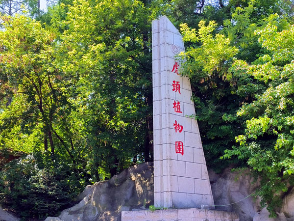 走进虎头植物园内,首先要经过一条长达数十米的环形栈道,栈道为玻璃地面,透过玻璃往下看一幅幅靓丽动人的风景图片。桥的上面是一环套一环的圆圈,游人穿行其中感到十分惬意。