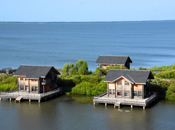 景区以新开流古文化遗址、大湖沙滩、小湖观湿地、浮桥码头等景观为主。主要景点有湿地公园、国家地质公园博物馆、小湖游船。
