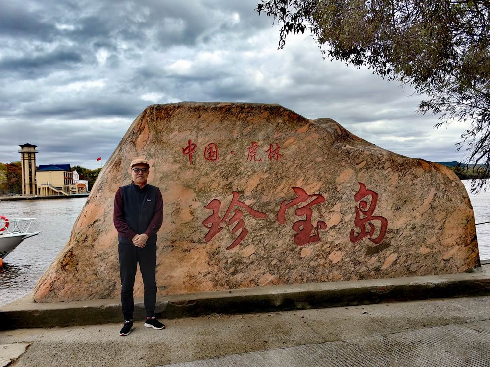 珍宝岛距离黑龙江虎林市168公里,我们路过打卡。图为我在珍宝岛拍的纪念照。