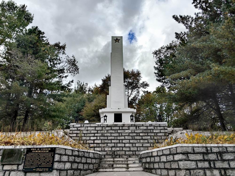 沿小路来到虎东山顶,有一座苏联红军纪念碑,是为纪念反法西斯战争胜利由苏联红军设计,当地居民出工修建的。