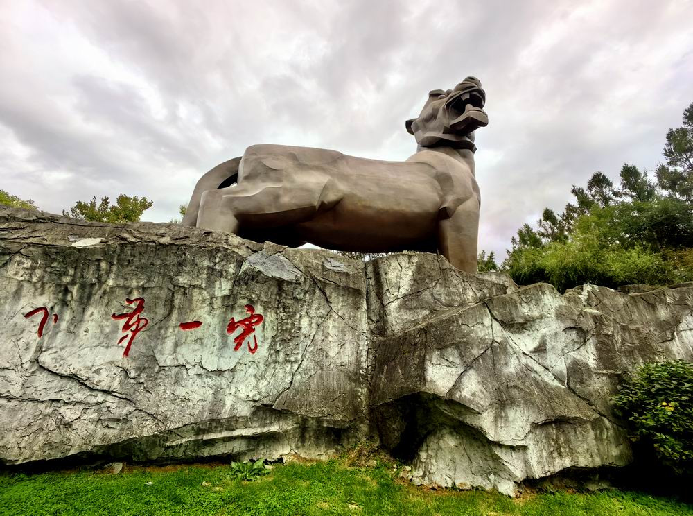 当然人家这可不是东北人常说的“虎”,而是在当地的虎头山上建了一座高大威猛的铜老虎。