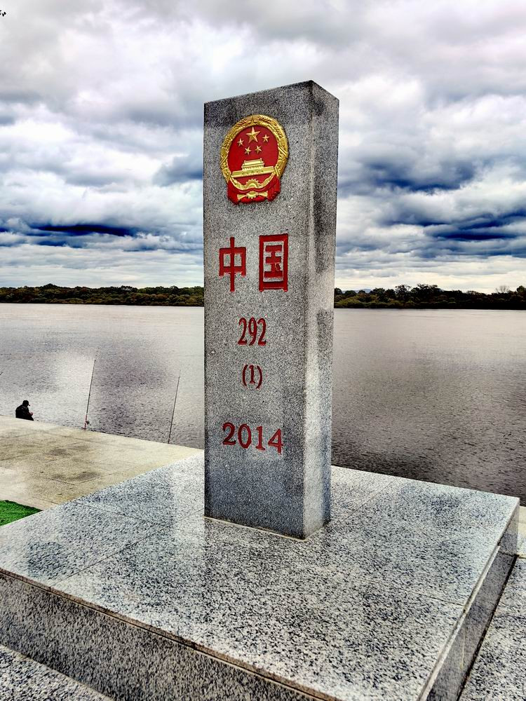 乌苏里江岸边的界碑。