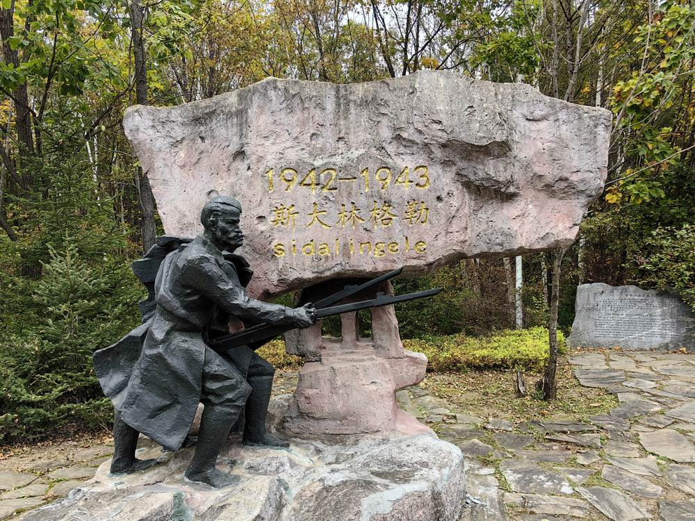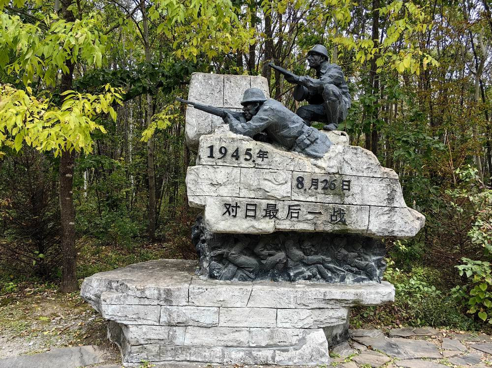 第二次世界大战终结地纪念园内的虎头要塞歼灭战纪念雕塑。