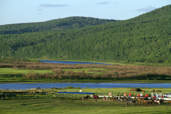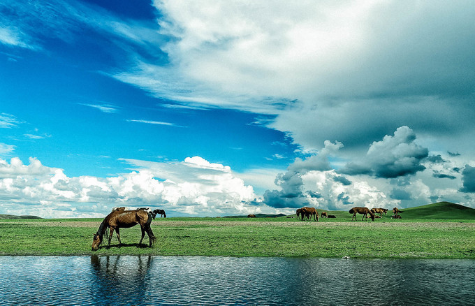 为照片关联地点很多马匹在莫日格勒河畔的草地旁,悠闲的吃草。 或许这才是草原本来的样貌。