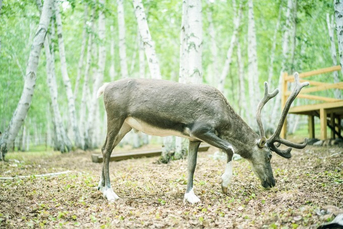 为照片关联地点苔藓是他们的最爱,驯鹿很是温和。