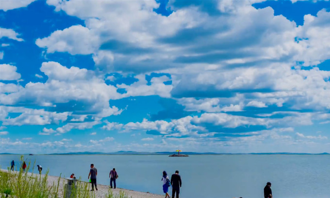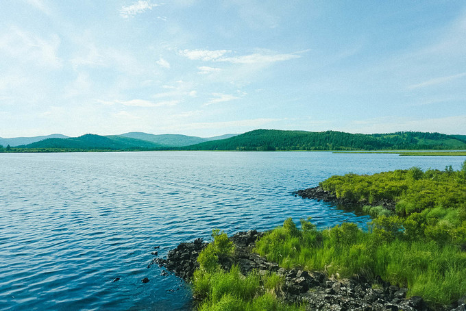 为照片关联地点这里也是内蒙的第一 大湖 ,湖水不断拍打着岸边的石块,涛声响亮。