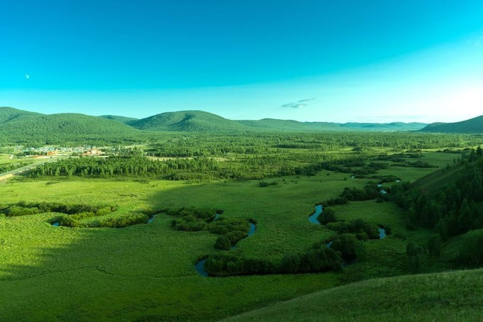 为照片关联地点站在山坡上眺望,那清澈的河流,碧绿的森林草甸,似乎篆刻着一眼万年的惊艳。