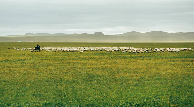 为照片关联地点骑马的牧民,正在赶着自家的羊群。