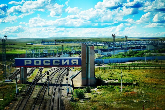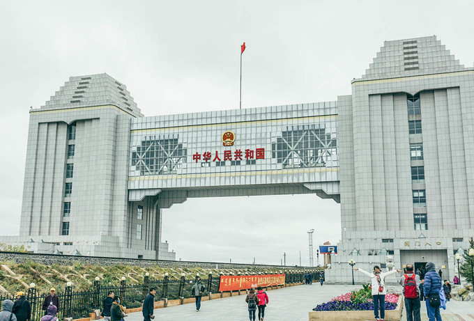 为照片关联地点爬上5层楼梯,登上国门,我们就能看到对面的 俄罗斯 了。 据说这条铁路承担了很大一部分中俄贸易往来的货运运输。