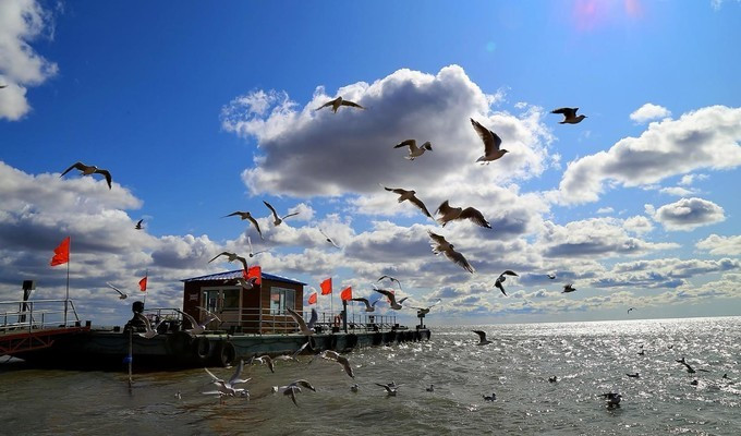 为照片关联地点呼伦湖边生活着我叫不上名字的鸟儿,它们在此嬉戏。