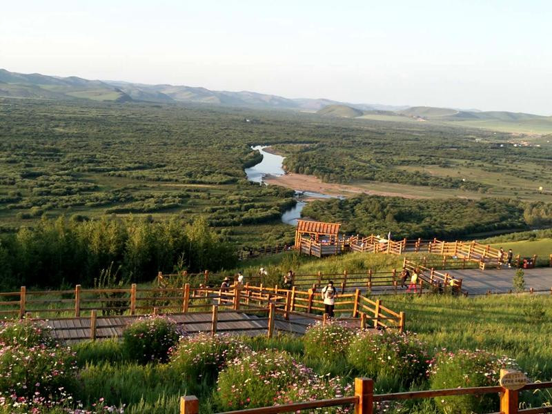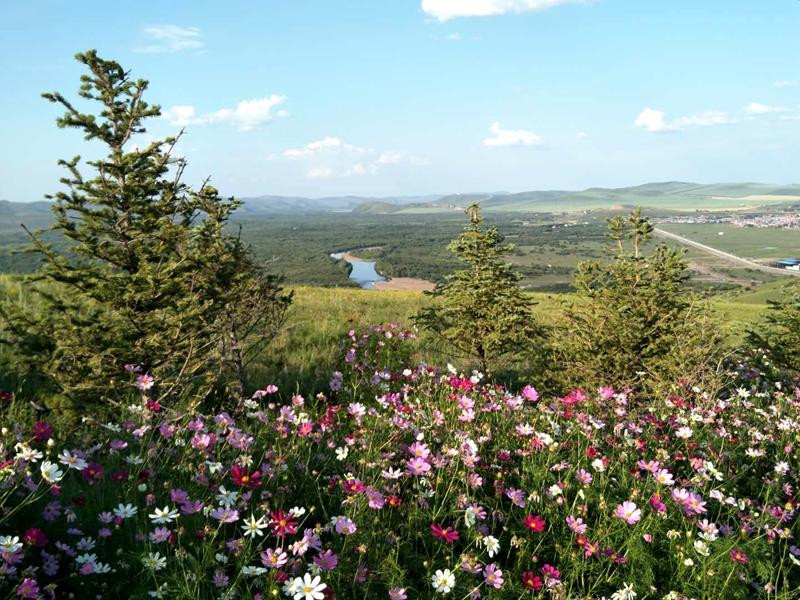 汽车一路向北沿省道大约走了50多分钟,来到莫日格勒河,也称“天下第一曲水”,金帐汗蒙古部落就是基于这条河水而建,如今已是呼伦贝尔著名的旅游景点之一。每到水草丰美的季节,这里就会聚集很多游牧的牧民,形成一个自然的游牧部落。越野车深入草原腹地,眼前豁然明亮,近处是广阔的平原,远处是高低起伏的山丘;继续前行湛蓝的天空、壮丽的草原、悠闲地羊群、点点的蒙古包、蜿蜒的河水仿佛在告诉我们,欢迎来到大草原!D2:额尔古纳--亚洲第一湿地--敖鲁古雅--根河--得耳布尔--莫尔道嘎亚洲第一湿地,站在山上的观景台鸟瞰整个湿地,一条条弯曲的小河穿梭在茂密的树林中,金黄的麦田和油菜花,碧绿的杨树和松树,还有白色树干的桦树,更加美丽的是星星点点的格桑花,散落在小径边,紫的、白的、粉的,成渐变色,一簇簇、一团团,似乎在俏皮地迎接我们。