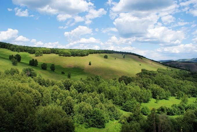 D8:阿尔山-伊尔施-七仙湖-巴彦呼硕草原-天下第一包-海拉尔从一望无际的草原景色,转到了郁郁葱葱的高 大树 林,既有潺潺流水,也有山脉纵横,
