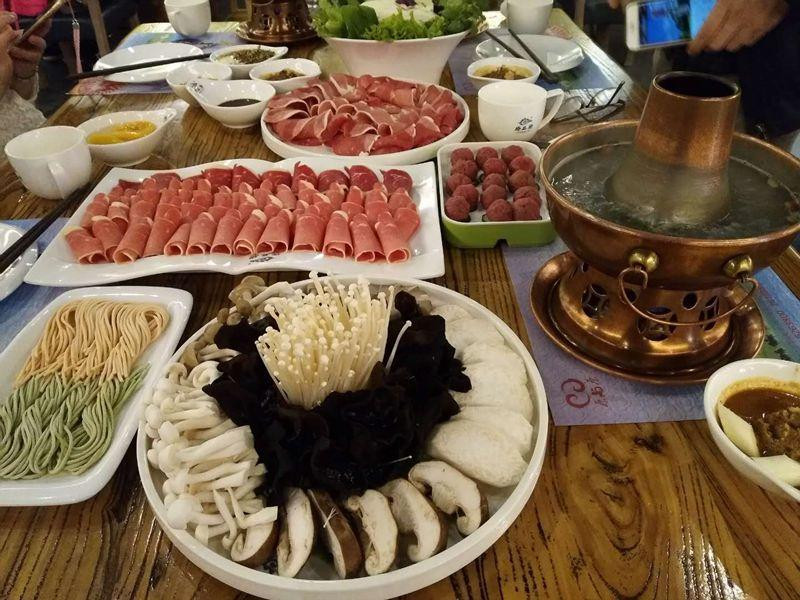 蒙古包饮食文化是十足的草原风味。新鲜的奶茶送上来,香喷喷的手扒羊肉端上来,那种鲜鲜的香气,使人垂涎三尺。到了这里,你就大口大口地吃羊肉,大口喝浓烈的白酒,酒过一半,思绪正如云在半山腰拥来拥去。歌声在酒桌上就点亮了,那拉着长音的蒙古族民歌与黄土高原民歌一样有个性。草原敞开窗口,小风夹着青草味浸入游客心扉。人们又会怀念起草原英雄成吉思汗,亲近勤劳、善良的牧民和苍劲的草原、悠扬的马头琴声。