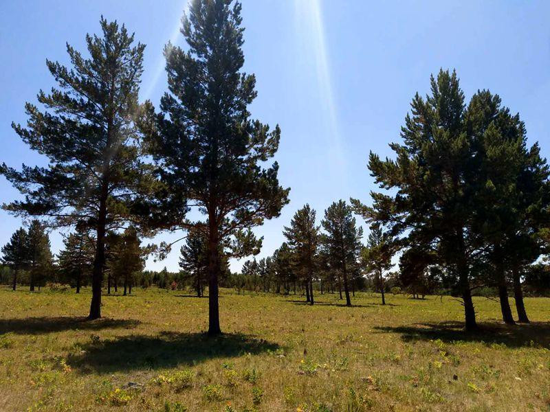 车子继续北开,途径大片的白桦林,晚风吹拂,白桦树轻轻摇曳;白桦树有“纯情树”之称,白色的树干,翠绿的叶子,在湛蓝的天空下,远离尘器,以优雅的姿态生长在广袤的草原上。顺着树干,透过碧绿的叶子仰望天空阳光从叶子的缝隙中透射进林子里,树与影在阳光下随风摇摆,灵动,活泼