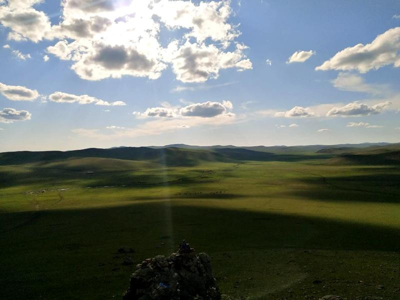 草原上空的风力不小,云流动起来很快,你能在草原上看到各种云块的投影,有点变幻莫测的感觉