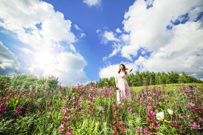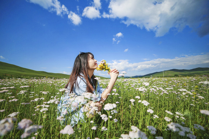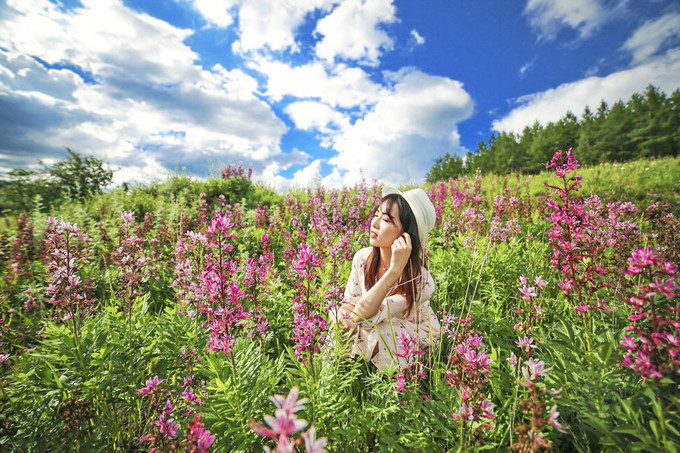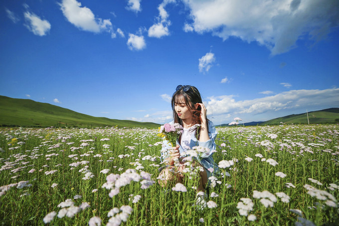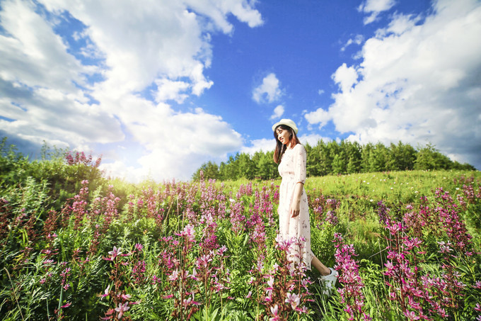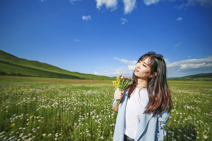 天气如此的好,路旁的野花正在绽放,摘下野花,这是最好的拍照道具了吧。