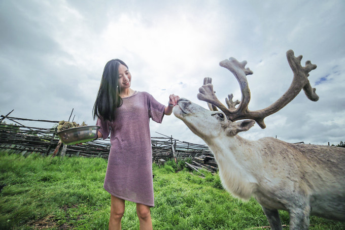 来到这里旅游,喂驯鹿真的是必须体验的。(驯鹿是吃苔藓的哦)