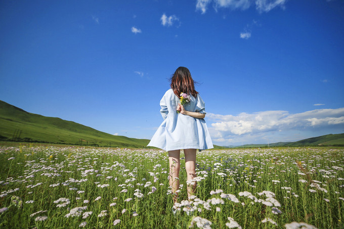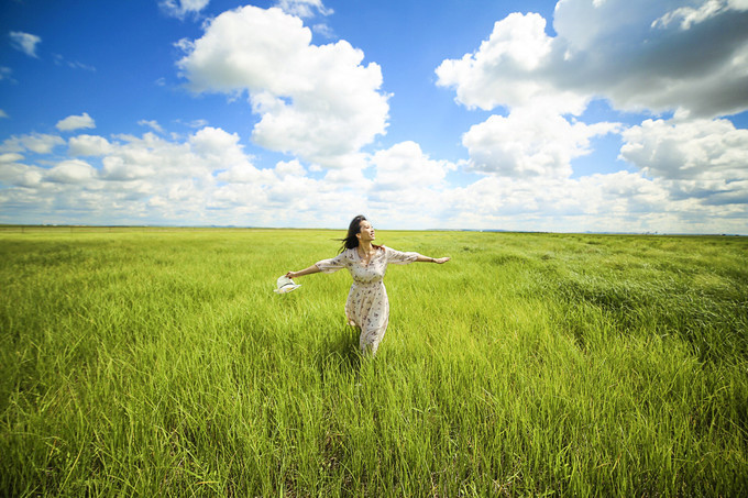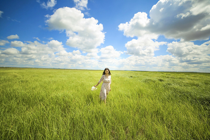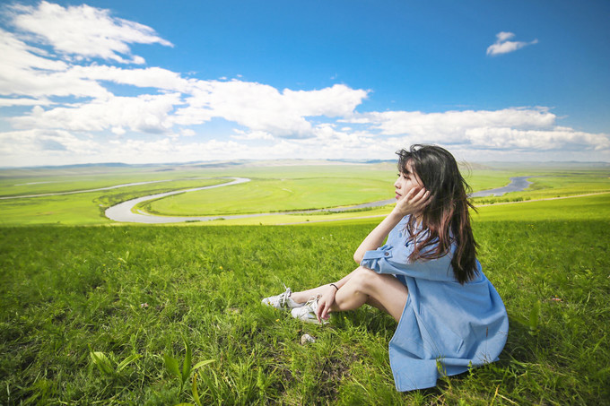 坐在这里,就想对着这样的蓝天白云、青青的草原,发发呆,放空一下自己。