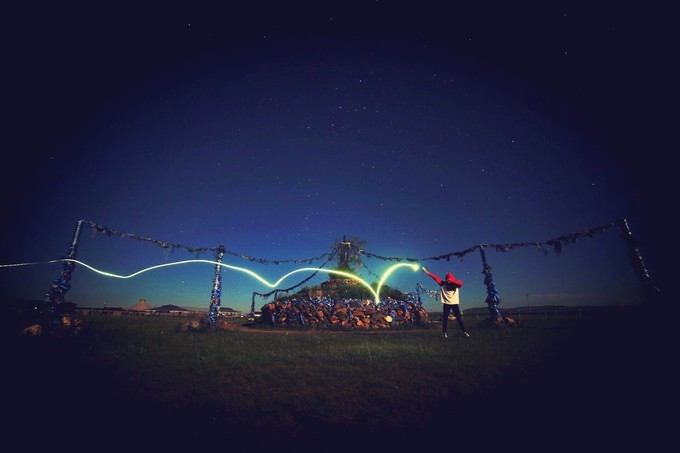 晚餐后,小司把我们都叫出 蒙古 包,玩起了光绘。