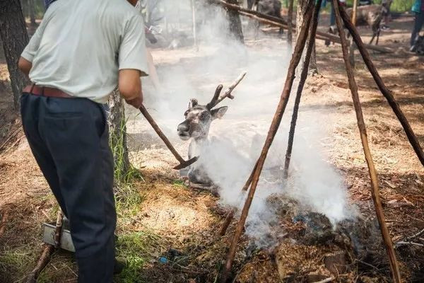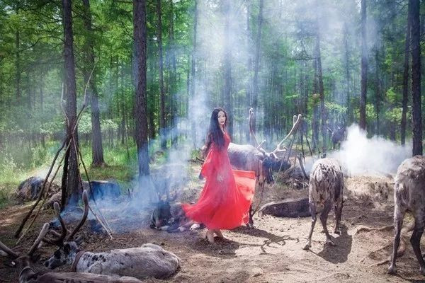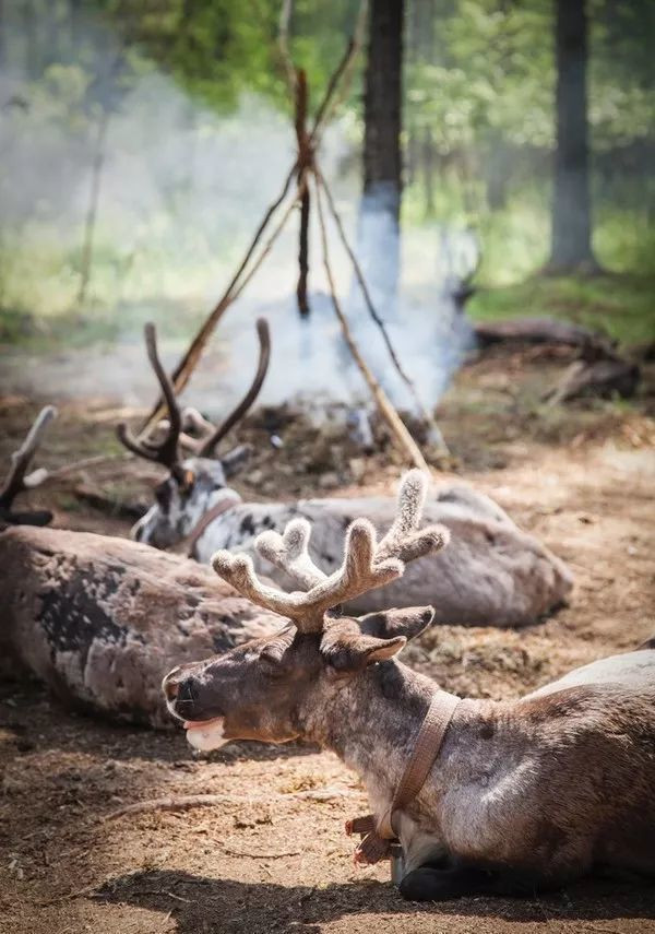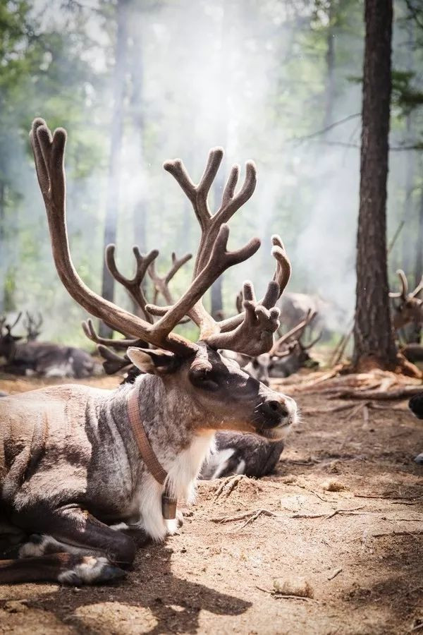 敖鲁古雅驯鹿之乡 启程前,cc一直嚷着要带烟饼,我默默的浇了冷水。再见到驯鹿,发现烟雾缭绕和昨天下午一样,问了看鹿的大叔才知道,这些烟是用来熏蚊虫的,鹿在烟在,我们终于拍到了胜过烟饼效果的仙境和驯鹿。