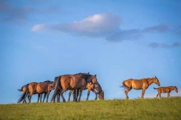 呼伦贝尔 大草原是世界著名的天然牧场,也是世界著名的三大草原之一。来到这里放眼远眺,一望无际的草原,仿佛是浩瀚的绿色海洋,骏马在草原上奔驰,那一个个白底带有蓝色柔美线条图案的 蒙古包,镶嵌在辽阔的草原上,旗杆上的彩旗在风中招展飞舞,土炮、木车点缀着草原,在蓝天白云的辉映下,是一副梦里的画卷。