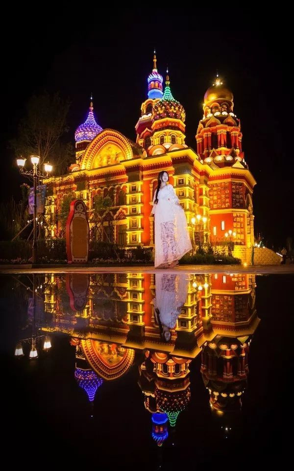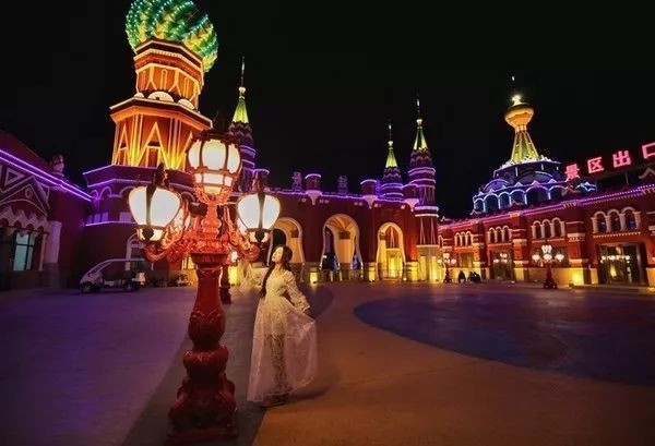 满洲里 等到天黑下下来,我们继续回到套娃广场,正巧遇到夜间的试营业,8点前可以随意进园,如果正价票,大概是要一百元左右。