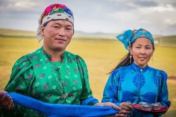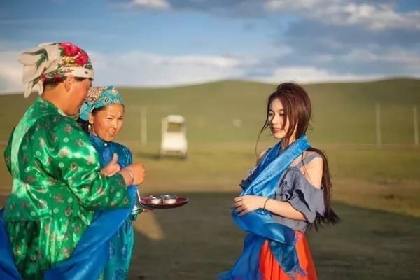 陈巴尔虎旗 太阳余晖里,我们到达了今天的晚饭地方,也是一个真正的牧民家--八妹 蒙古 包。第一次被用草原仪式欢迎:一脸热忱的牧民手握蓝色的哈达,递上自家的酒给你取暖,喝一口,然后用手指沾取一部分,滴到你额头,再带上哈达,迎你入账。入账后史师傅跟我们解释,敬酒斟酒敬客,是 蒙古族待客的传统方式。他们认为美酒是食品之精华,五谷之结晶,拿出最珍贵的食品敬献,是表达草原牧民对客人的敬重和爱戴。通常主人是将美酒斟在银碗、金杯或牛角杯中,托在长长的哈达之上,你接住酒后,用无名指蘸酒向天、地、火炉方向点一下,以示敬奉天、地、火神。不会喝酒也不要勉强,可沾唇示意,表示接受了主人纯洁的情谊。