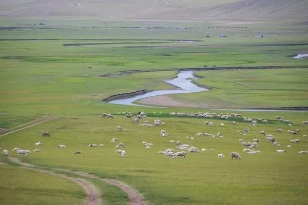 草原真正的天黑,要到晚上8点,但下午游走草原,你仍然可以看到太阳慢慢的西落,看到草原从碧绿变成青黄。每片草原,都有一个小 蒙古 包或者牧羊犬宣释着这是它的领土。大白师傅说,这里有夏季草场和冬季草场之分。每年的9月之后,牧民们就会把羊迁移到冬季草场,让夏季草场得以恢复生机,来年再把羊群赶回来,这是 蒙古 放牧人与大自然不成文的约定,这个规律世代相传,大概已经成了草原大自然的一部分。