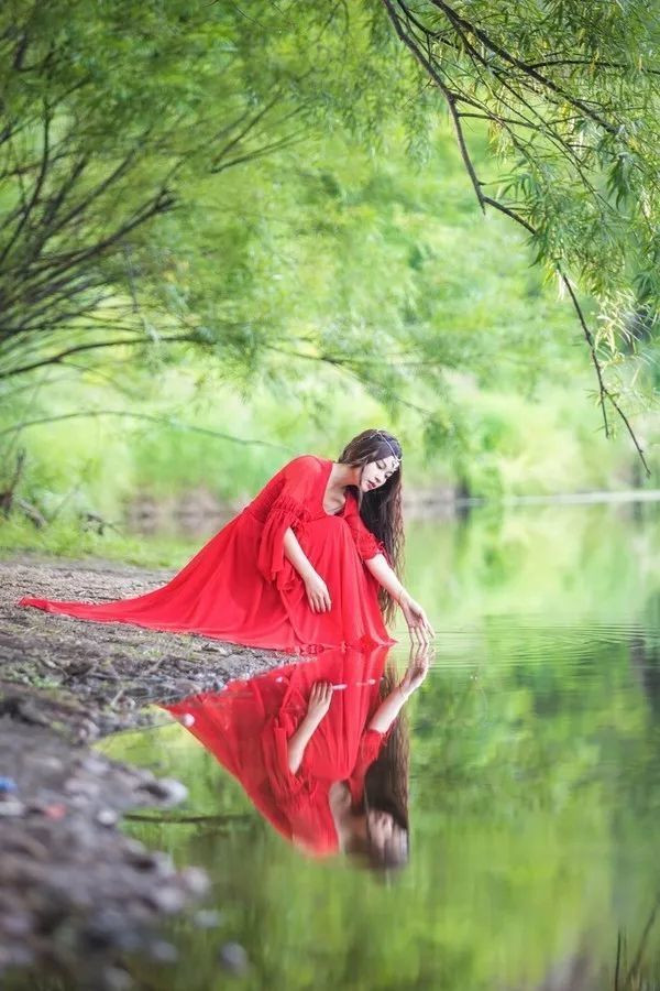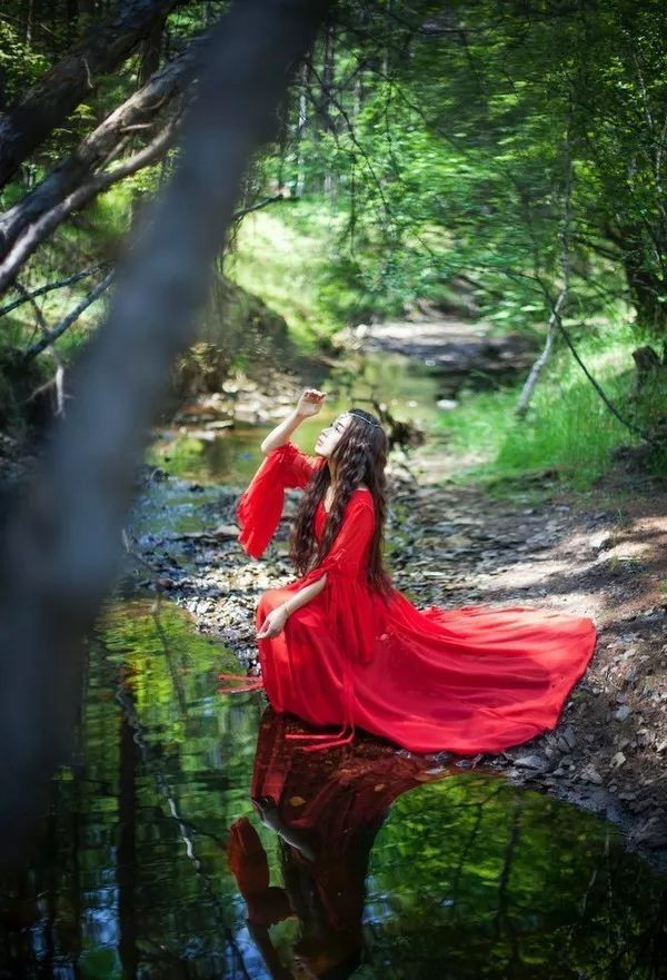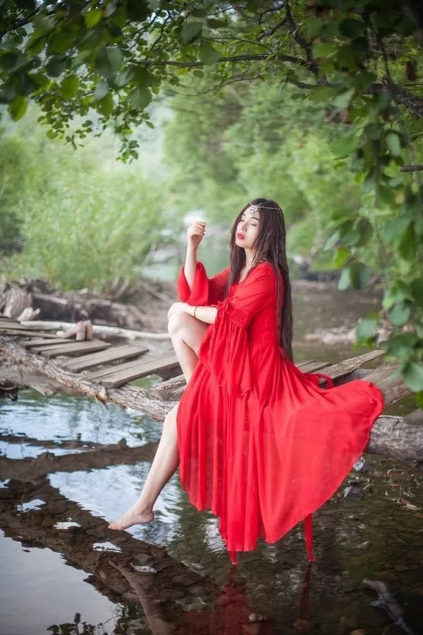 途中路过另一个白桦林,有一个栈桥可以深入腹地,我拽着大红裙,转了几张白桦林巫女照。