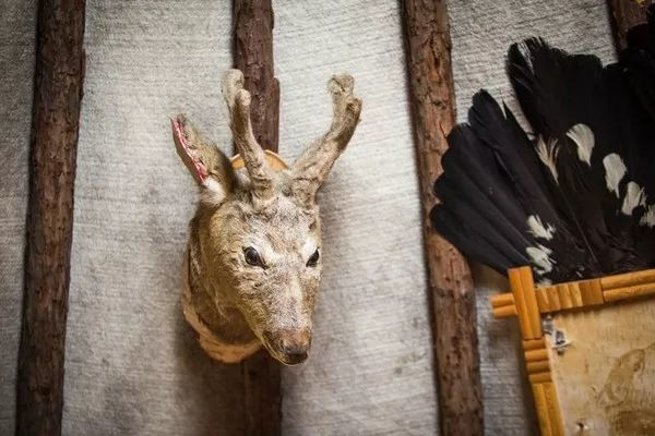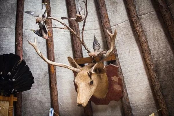 敖鲁古雅鄂温克猎民信封萨满,还会祭拜树神,用桦树皮制作生活用具。他们不砍伐活树,宁可走到很远的地方去扛回枯死的树木做烧柴。