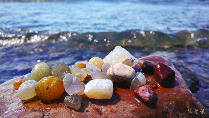 虽然没有时间去玛瑙滩,在湖边也能捡上一些很漂亮的石头,据说去年在这里还有人捡到一块指甲盖大翠绿翠绿的像翡翠一样石头,当地懂行的人说那叫玉髓,可是人品大爆发的产物。