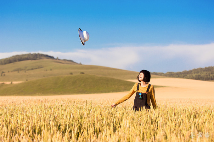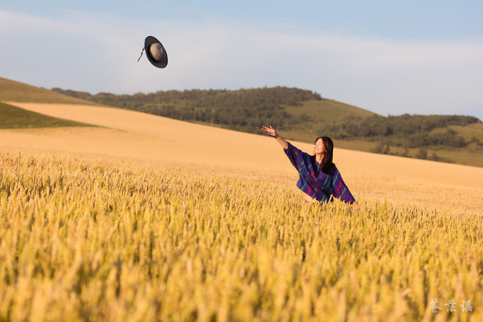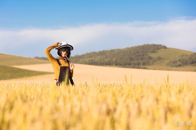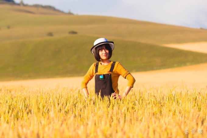 这是一处私密的拍摄地点,因为我们来的时间有差,不然近处麦子还是绿色,油菜花是金黄色,远处山是绿色的,天是蓝色的,色彩构成的独特的夹角,这样多彩的时空里,拍出风光大片是丝毫问题没有。(我们进到麦田是走的空缺地方进去的,站的也是空缺的地方,并没有不珍惜农民伯伯的辛勤劳作呦,稍微缺损的地方回家ps一下就搞定了,就连嘴上的麦穗也是其他地方捡到的一直在车上把玩,到这里正好派到用场了,珍惜他人的劳动成果是一定要注意的,毕竟要文明旅行嘛)