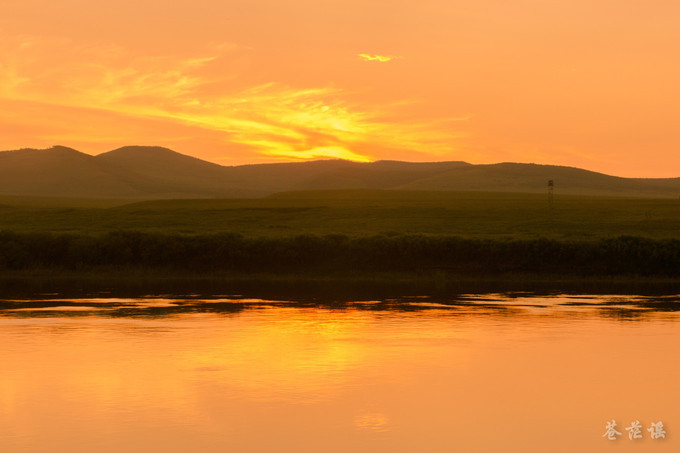 临江 日落,我们所站的土地是 中国 的国土,山上还有一块 中国 112号界碑,这条河就是 额尔古纳 河,也是中俄界河,对面的土地和山河就是 俄罗斯 了,甚至可以清晰看到 俄罗斯 的边防哨所。感觉如果冬天河面冰封的时候从 中国 跑到 俄罗斯 甚至用不了二十秒就可以到达对岸,我相信来过这里的不止我一个人想过偷偷的到 俄罗斯 溜达一圈再回来,好吧,也只是想想,我可是守法公民(我可不想被机关枪打成马蜂窝,怕死)。